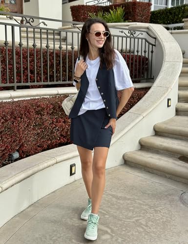 • The vest features v-neckline, single-breasted front and back adjustable straps for a customized fit. The high rise skirt has a elastic waist and a built-in shorts design, adding a practical yet stylish touch to the skirt and vest set for women