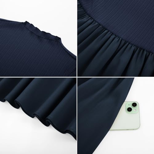 Women's Long Sleeve Dress 2025 Fall Dress Midi Ribbed Funeral Church Work Dresses A-Line Mock Neck Flowy Swing Navy Blue M 4