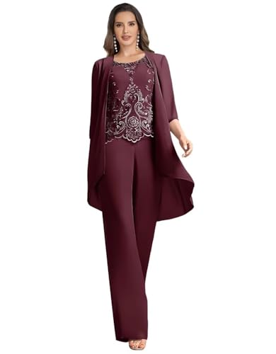 3 Pieces Mother of The Bride Pant Suits for Wedding Party Lace Chiffon Pant Suits Dressy for Women Evening 1
