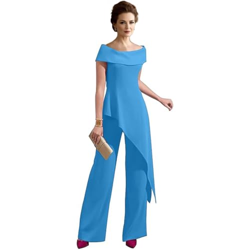 2 Piece Mother of The Bride Pant Suits for Wedding Off The Shoulder Chiffon Wedding Guest Outfit 7
