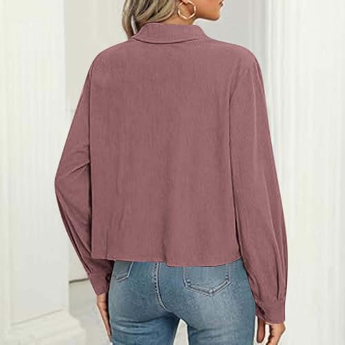 Womens Fashion Cropped Shackets Corduroy Button Down Crop Jackets Tops Long Sleeve Blazer Suit CoatTrendy 2024 6