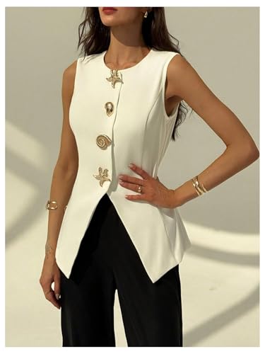 HOT ! Floerns Women's Summer Star Metal Sleeveless Vest Blazer Split Hem Suit Jacket White X-Large