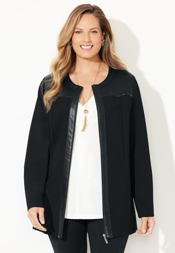Catherines Women's Plus Size Black Label Zip Front Ponte Jacket 1