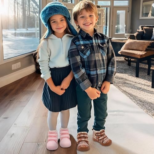 LeIsfIt Toddler Boots Girls Boys Warm Winter Boots Cozy Plush Lining Winter Shoes Indoor Outdoor Faux Fur Booties 6