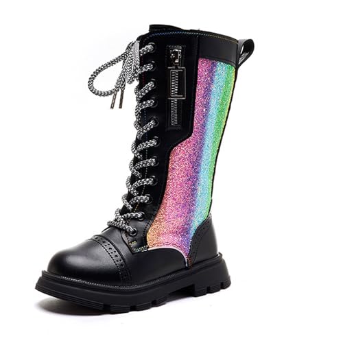 More information about Girl's Sparkly Knee High Boots Comfort Side Zipper Lace-up Long Boots Fashion Colorful Combat Shoes
