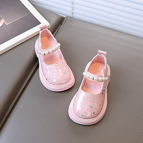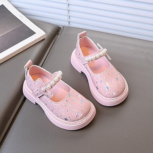 Kids Girls Mary Jane Princess Shoes Glitter Star Low Heel Pearl Strap Sandals Wedding Pageant Birthday Party Shoes 5