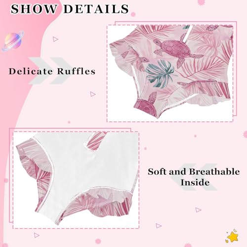 Pink Turtle Leaves Pattern Girls Long Sleeve Swimsuit Rash Guard One Piece Bathing Suits Zipper 3-12T 5