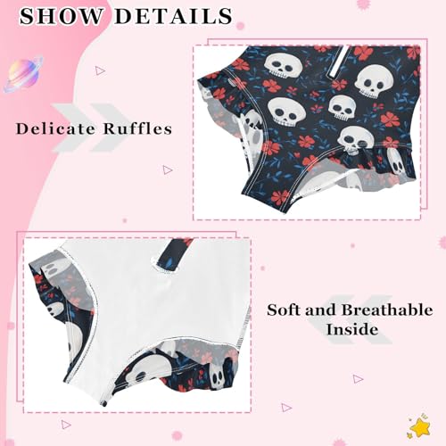 ALAZA Sugar Skull Red Flower Girls One Piece Swimsuit Long Sleeve Rash Guard Swimsuits UV 50+ Swimwear Zipper 7