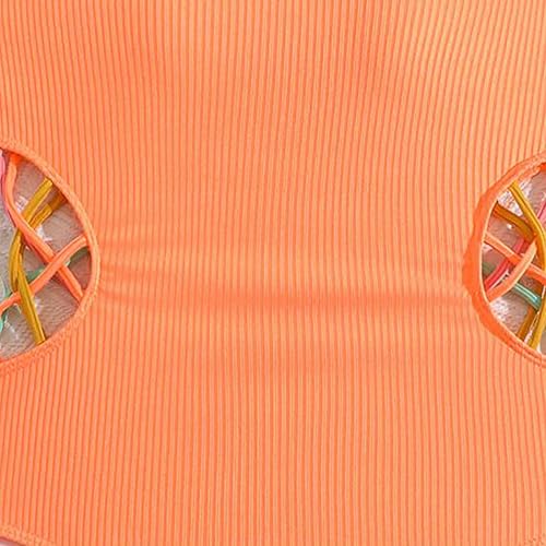 Girls One Piece Swimsuits Ribbed Spaghetti Strap Monokini Solid Bathing Suit for Kids Teens, Beach Sport Swimwear 6