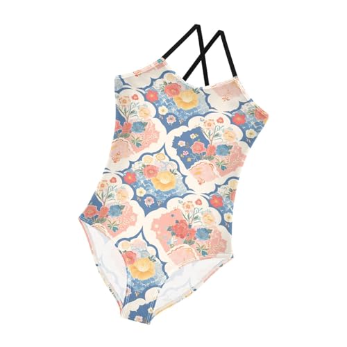 KLL Seamless Asian Traditional Patterns Girls' 1-Piece Swimsuit Beach Swimming Suits with Adjustable Straps Quick Dry 6