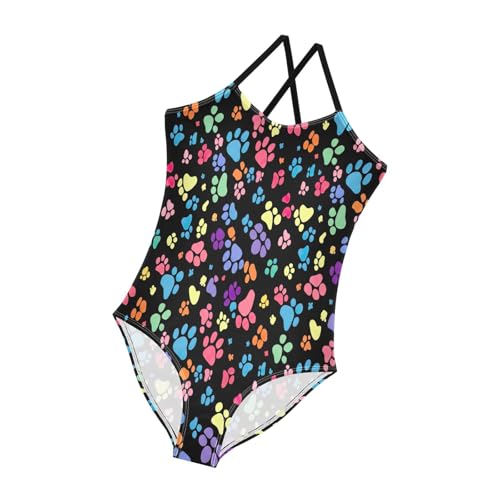 Colorful Cute Paw Prints Girl Swimsuit One Piece, Summer Beach Bathing Suits Girls, 3-10 3