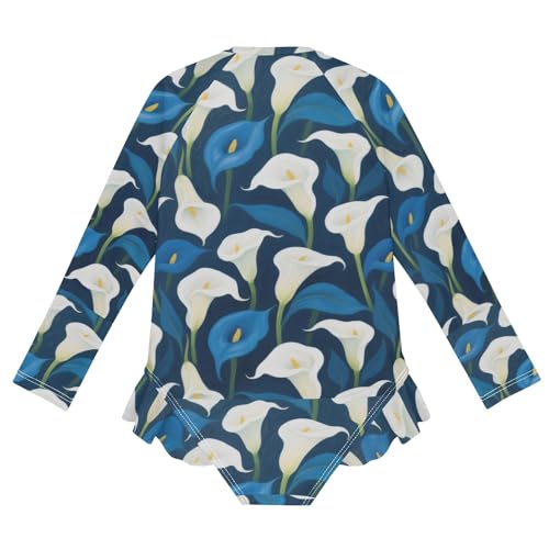Girls Long Sleeve Swimsuit White and Blue Calla Lilies Girls Swimming Suits Toddler Bathing Suit 2