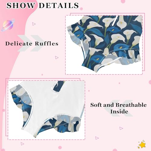 Girls Long Sleeve Swimsuit White and Blue Calla Lilies Girls Swimming Suits Toddler Bathing Suit 4
