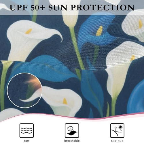 Girls Long Sleeve Swimsuit White and Blue Calla Lilies Girls Swimming Suits Toddler Bathing Suit 7