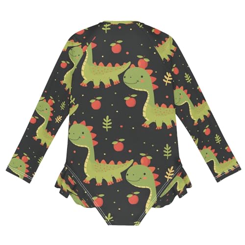 Dinosaur Fruit Girls Long Sleeve Swimsuits One Piece Zipper Bathing Suit UPF 50+ Rashguard Swimwear 5