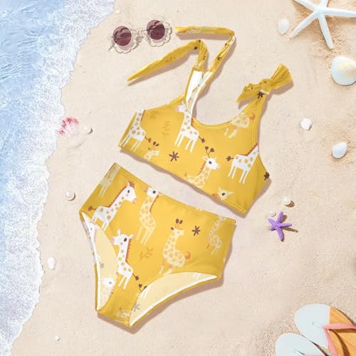KLL Giraffe Animal Cute Cartoon Yellow Girls 2 Piece Bikini Sets Scoop Neck Swimming Bathing Suit Swimwear 5