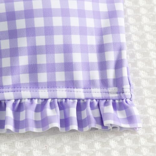 Girls 2 Piece Swimsuit Kids Cute Knotted One Shoulder Ruffle Plaid Bikini Sets Bathing Suit Beach Summer Swimwear 2