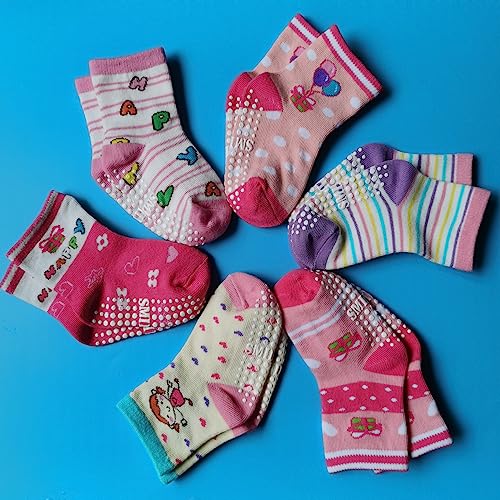 Toddler Grip Crew Socks With Grippers Boys Girls Kids 1-3/3-5/5-7T 6 Pairs 5