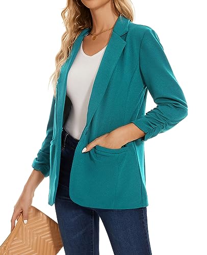 MINTLIMIT Darkcyan Blazer Jacket for Women Ruched 3/4 Sleeve Notched Lapel Button Pockets Blazer Suit Cardigan (Darkcyan, S) 3