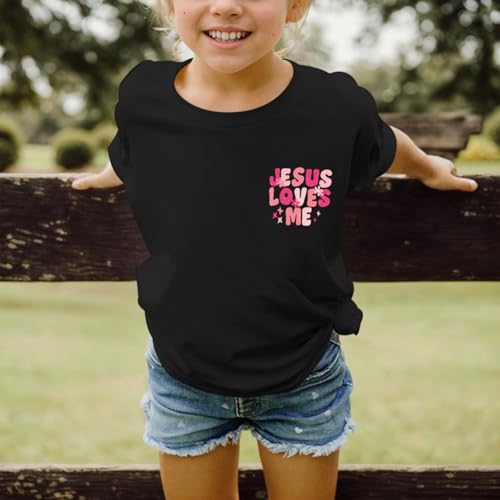 HOT ! Girl's Christian Graphic Tees Jesus Loves Me Shirts for Kids Cute Faith Floral Tshirt Religious Bible Verse Tops