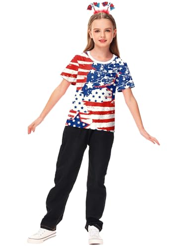 Deerose Kids Striped Shirts Short Sleeve Boy Girls July 4th Patriotic Tee Top 3-14 Years 4