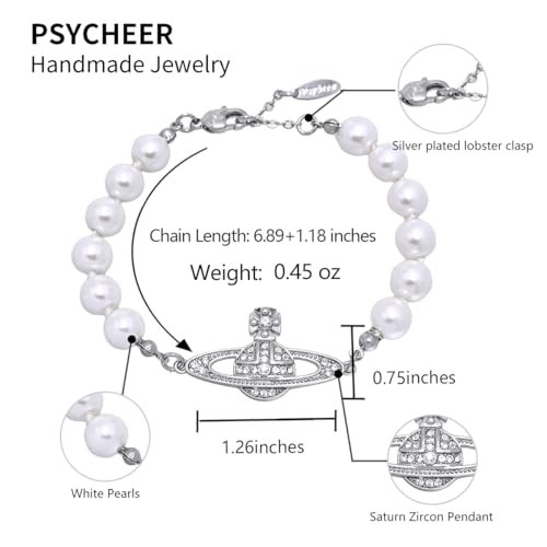 More information about Saturn Pearl Bracelet for Women, White Pearl Zirconia Elegant Saturn Pendant Jewelry Adjustable Chain Gift for Mother Wife Daughter, Birthday Anniversary Present