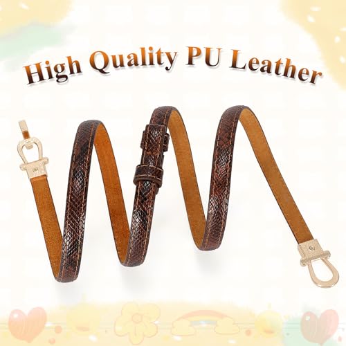 Leather Skinny Girl Belt for Dress Adjustable Thin Waist Belt with Golden Buckle 2 Pack 5