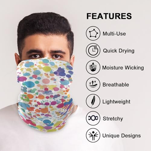 Colorful Polka Dot Pattern Four season Sun protection wristband womens neck gaiter Multiple Ways to Wear balaclava cloth face mask for women for Snowboarding Hunting halloween mask mascara 4