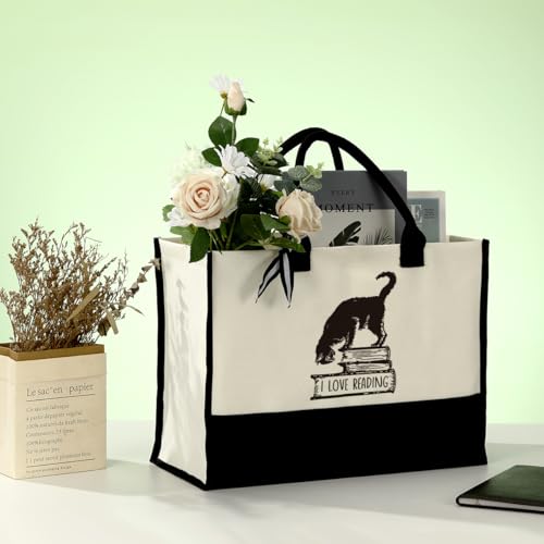 HOT ! EDCTO Canvas Tote Bag, Cotton Canvas Tote Bag, Library Canvas Bag, Birthday Gifts for Women Bookworm Book Reader Book Lover, Canvas Tote Bags for Women, Womens Weekend Bag, I Love Reading