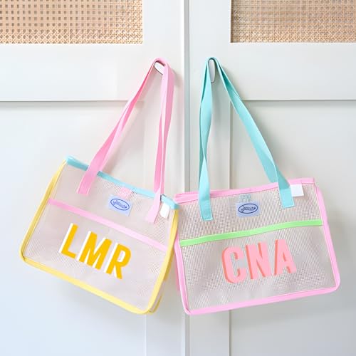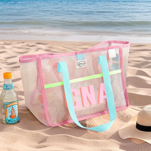 HOT ! Personalized Beach Mesh Tote Bag, Large Waterproof Sandproof Organizer, Custom Embroidered Name