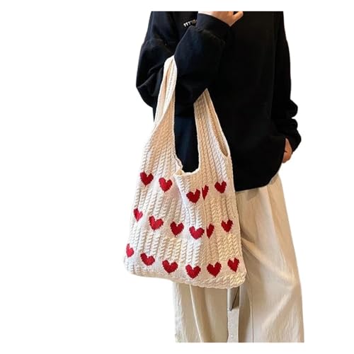 HOT ! Knitted Tote Bag Love Heart Graphic Fashion Woven Shoulder Bag Aesthetic Crochet Bag for Women for Café, Beach