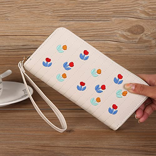 PU Leather Long Wallet Card Holder Phone Bag Change Pocket for Women Girls Coin Purse Money Bag Handbags Women Long Wallet (White) 1