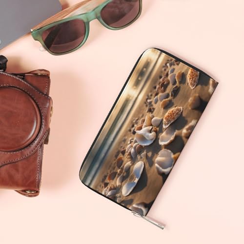 Seashell Landscape On The Beach Print Womens Wallet, Ladies Credit Card Holder, Phone Wallet Purses, Long Clutch Hand Bag 1