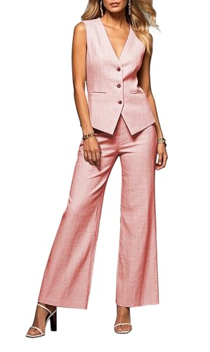 • Premium Two-Piece Suit for Women:This womens linen vest and pants set,designed for business meetings,corporate events,formal occasions.The two-piece suit features a tailored vest and sleek straight-leg pants, offering a polished,put-together look.Made from breathable fabric,this vest pant suit women love ensures all-day comfort without sacrificing style.Perfect for job interviews,office wear or client presentations,this dressy two-piece outfit keeps you looking sharp and confident.